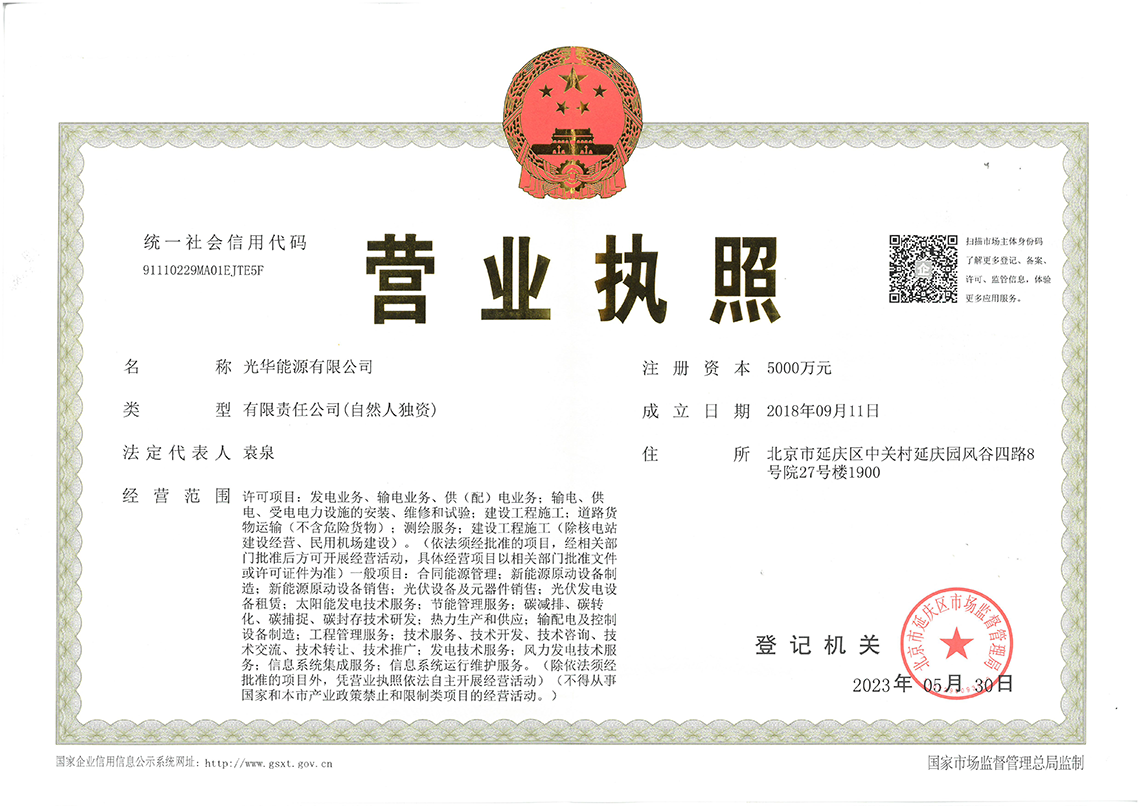 光华能源有限公司是一家专注于太阳能、风能、储能、氢能的销售企业。公司致力于为客户提供售电、光伏电站、储能站、充电站等综合能源服务的一站式技术解决方案。公司总部位于北京。公司核心团队具有丰富的能源系统经验,凭借对能源业务的深刻理解及经验丰富的执行团队,优异的整体解决方案及完善的开放式系统架构,公司平台得到了广大用户的认可。